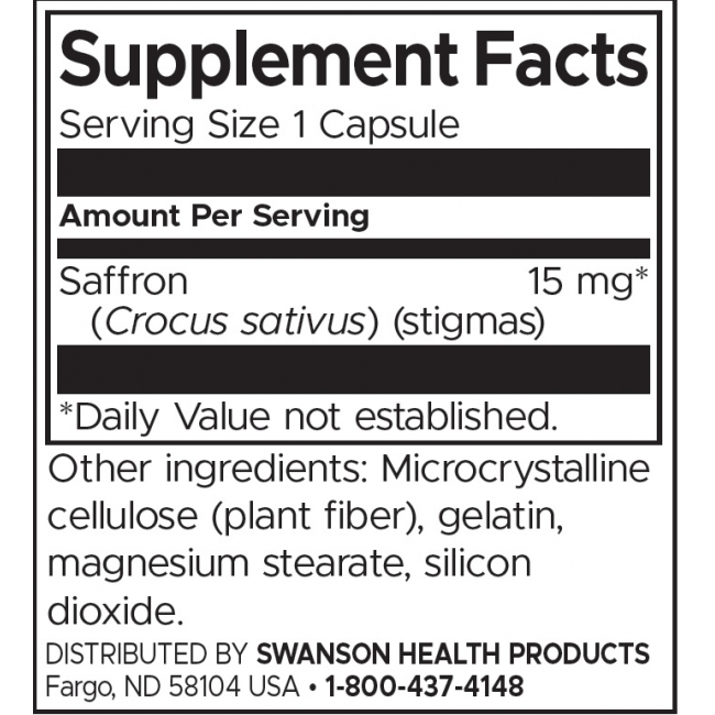 Пълноспектърният шафран от Суонсън е екзотична билкова добавка с много потенциални ползи. Шафранът е известен като една от най-скъпите подправки в света. Най-често се свързва с персийската кухня и се отглежда основно в Иран, Испания и Индия. Освен като подправка и оцветител, шафранът има дълга история на употреба в медицината още от древни времена. Днес интересът към него в научните изследвания отново нараства, определя се като силен антиоксидант и все повече проучвания подкрепят употребата му. Шафранът намалява стреса, подобрява настроението, подпомага паметта и мозъчната функция. Нашите капсули Шафран пълен спектър съдържат фино смлени близалца от висококачествен испански шафран.